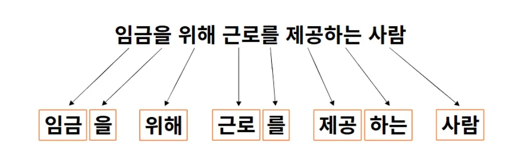 예를 들어 명사를 기준으로 선정시, 위 이미지 예시에서는 임금, 근로, 사람 등을 핵심어로 선정할 수 있습니다. 이러한 핵심어가 인덱스와 비슷한 형태가 될 때까지 여러 단계의 처리 과정을 거칩니다. 마지막으로 핵심어와 DB 인덱스를 대조하고 사용자가 원하는 데이터를 추출하여 보여주면 됩니다.