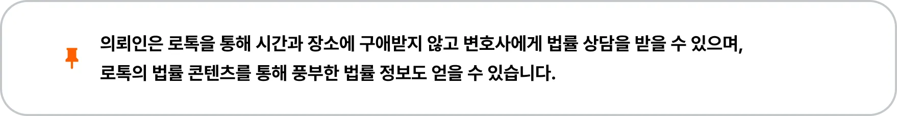 로톡의 의뢰인은 언제 어디서나 법률 정보를 얻고 법률 전문가의 도움을 받을 수 있습니다.