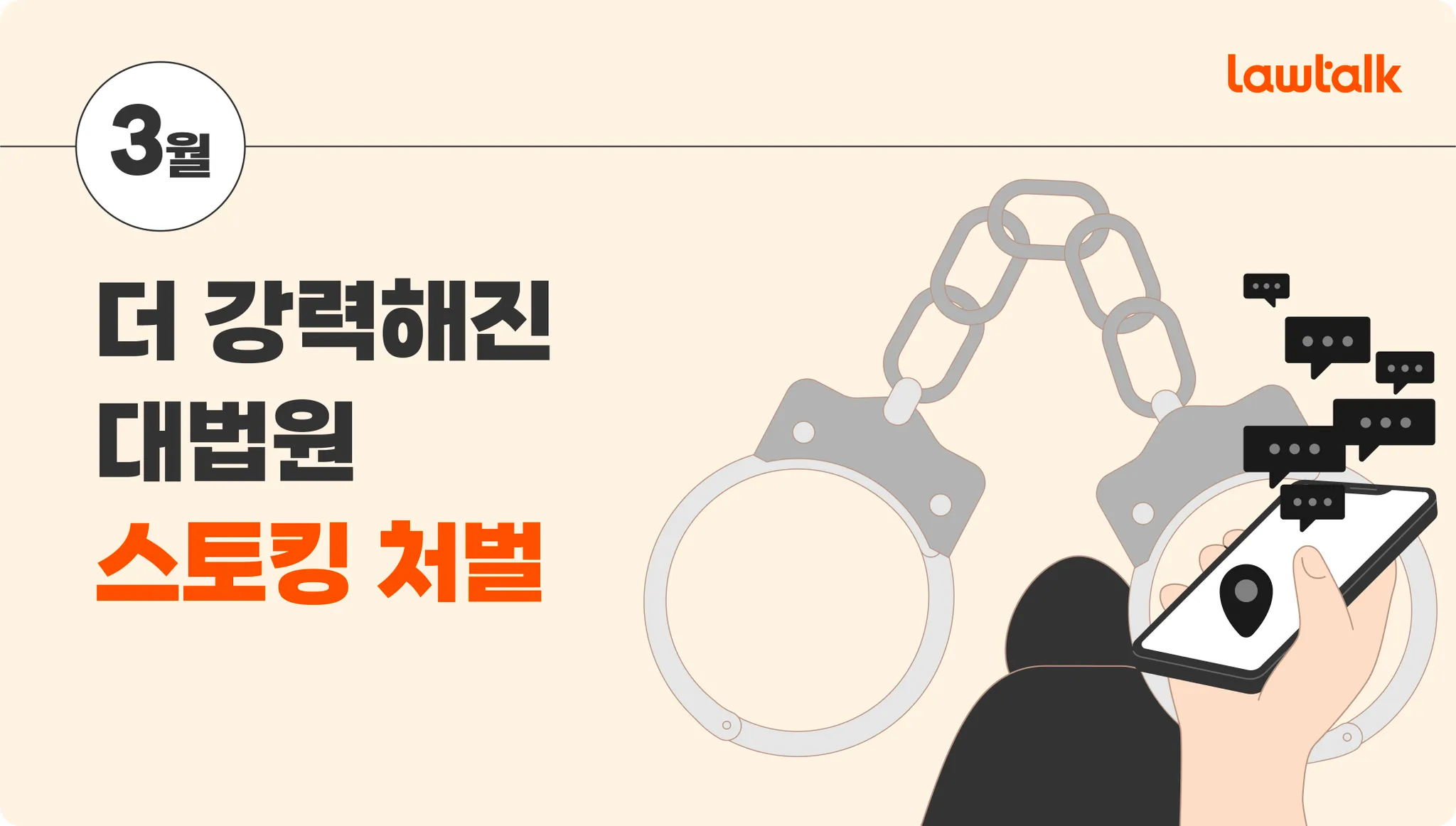 3월에 증가한 법률 상담은 ‘임대차’ 뿐만이 아닙니다. ‘형사/범죄’ 법률 상담도 3월에 크게 증가했는데요, 특히 ‘스토킹처벌법’ 이라는 법률 상담 키워드가 새롭게 등장하며 스토킹 처벌법에 대한 국민들의 관심을 확인할 수 있었습니다.