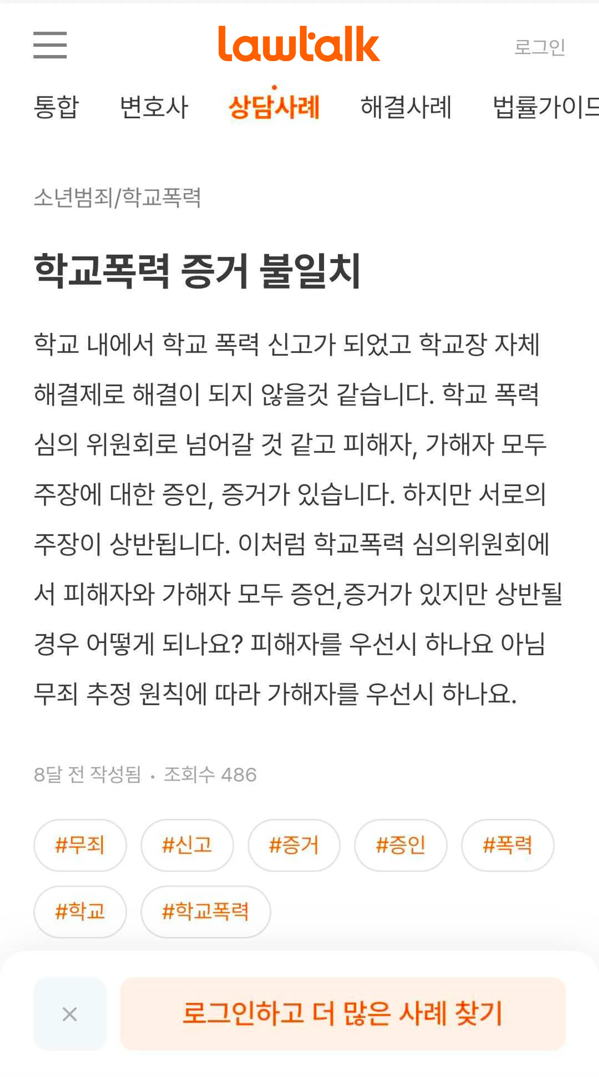로그인을 한 이용자에게 양질의 콘텐츠와 서비스를 제공하여 로그인 비율을 높인다면 법적 문제를 가지고 있는 유저부터 법적 문제를 가지고 있지 않는 유저도 재방문하지 않을까요? 유저의 재방문율을 높일 수 있는 다양한 방법들을 고민 중에 있어요.